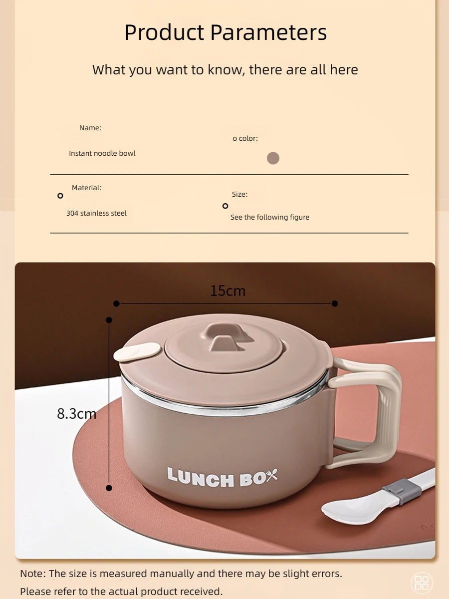 • 1 × 304 Stainless Steel Lunch Box / Noodle Bowl with Lid & Handle