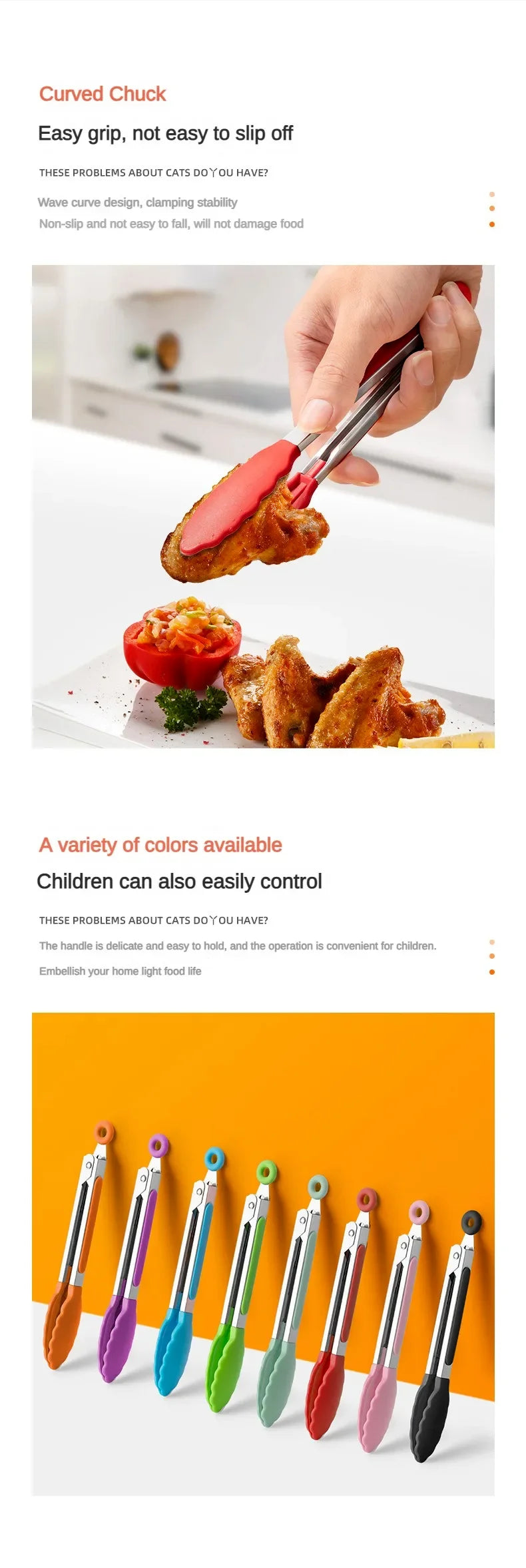 Anti-Slip Stainless Steel Cooking & Serving Tongs – Heat-Resistant Silicone Food Clip for Kitchen & BBQ