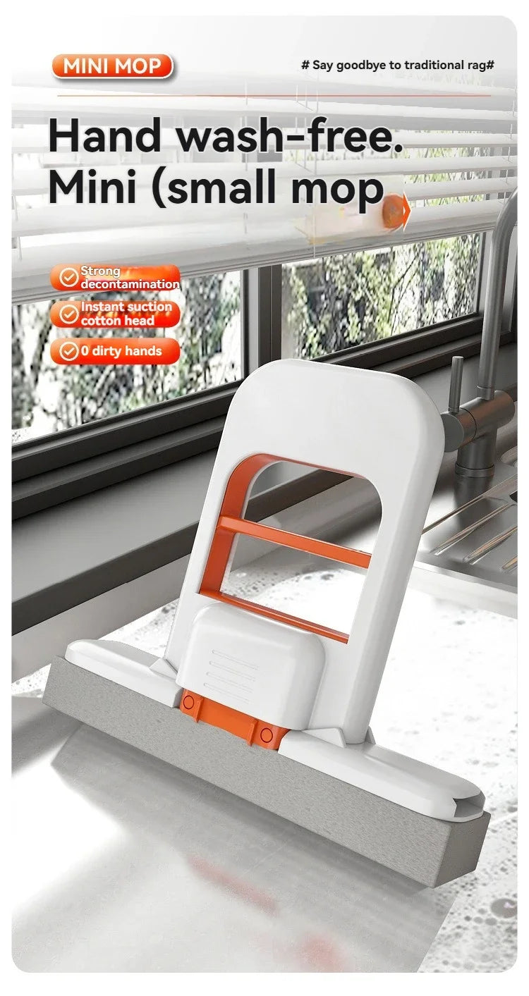 Foldable Handheld Sponge Mop – Portable Wet & Dry Dual-Use Mini Floor Cleaner with Self-Squeeze Design