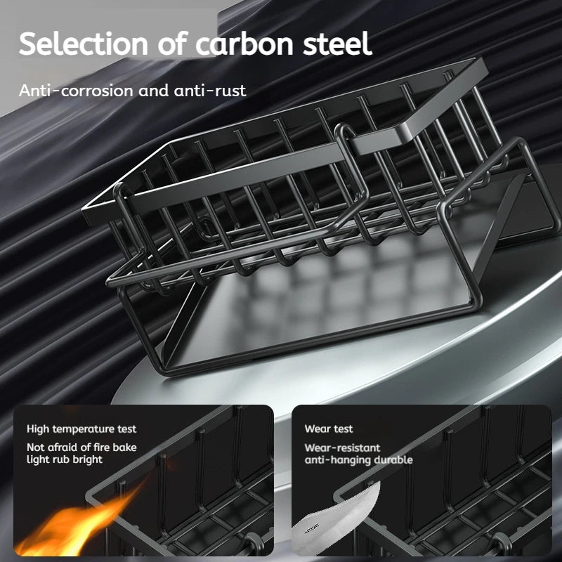 Upgrade your sink space with this stainless steel drain rack designed to organize sponges, soap, brushes, bottles, and small kitchen essentials. Featuring a hollow drainage tray with an inclined design, it allows water to flow directly back into the sink—keeping countertops dry and clutter-free. Its sturdy metal build and smart open-frame design make it the perfect multi-function storage solution for any modern kitchen.