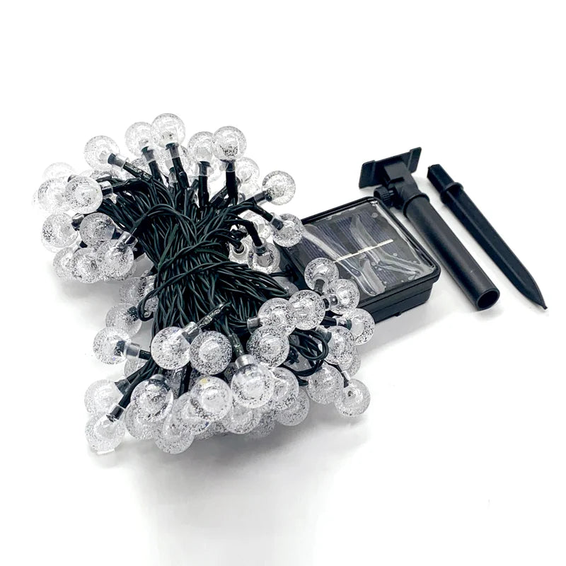 Create a warm and festive atmosphere with these solar-powered LED string lights designed for outdoor and holiday use. Featuring crystal ball LEDs and a modern style, these lights charge during the day and automatically illuminate at night—perfect for gardens, patios, camping, and seasonal decorations.