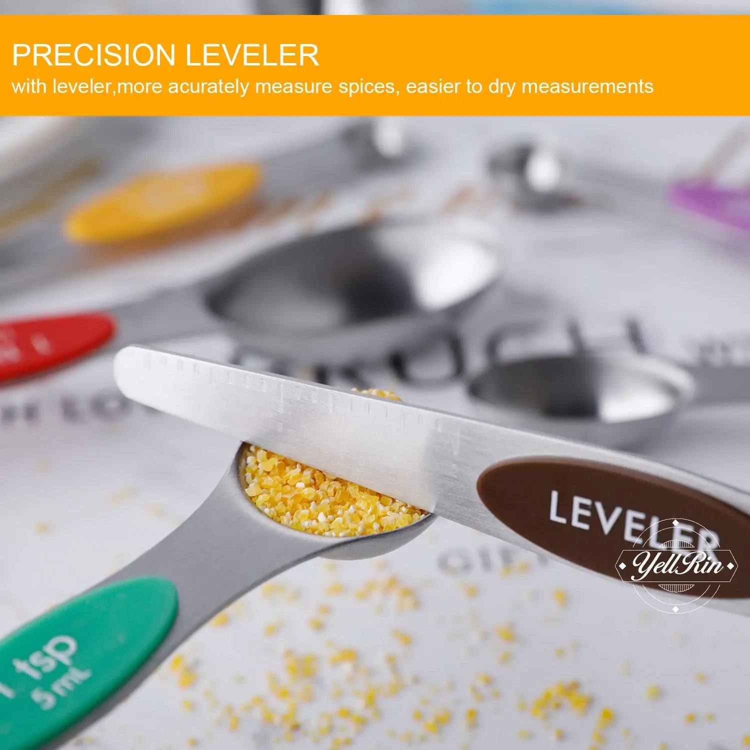 Magnetic Measuring Spoons Set of 8 Stainless Steel Stackable Dual Sided Nesting Teaspoons and Tablespoons for Measuring Dry and Liquid Ingredients