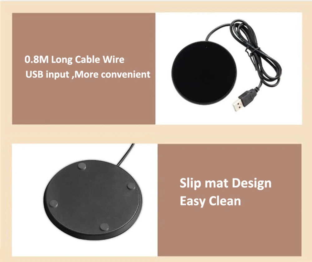 Powered by USB, this mug warmer works with laptops, desktops, power banks, and USB wall chargers — perfect for travel, remote work, and on-the-go lifestyles. Just plug it in, place your cup on top, and enjoy warm drinks for hours.